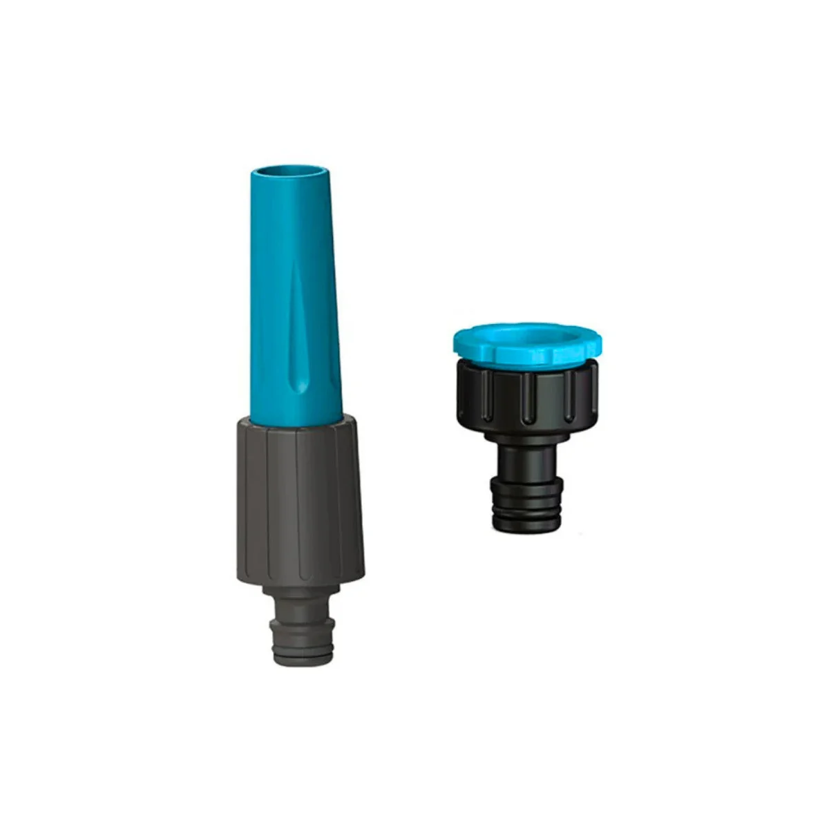 - Kit Pitón de Riego Ajustable (4 Piezas): Incluye el pitón de agua ajustable y los adaptadores/conexiones necesarios. El pitón permite la conexión a roscas de 1/2 pulgada x 3/4 pulgada.