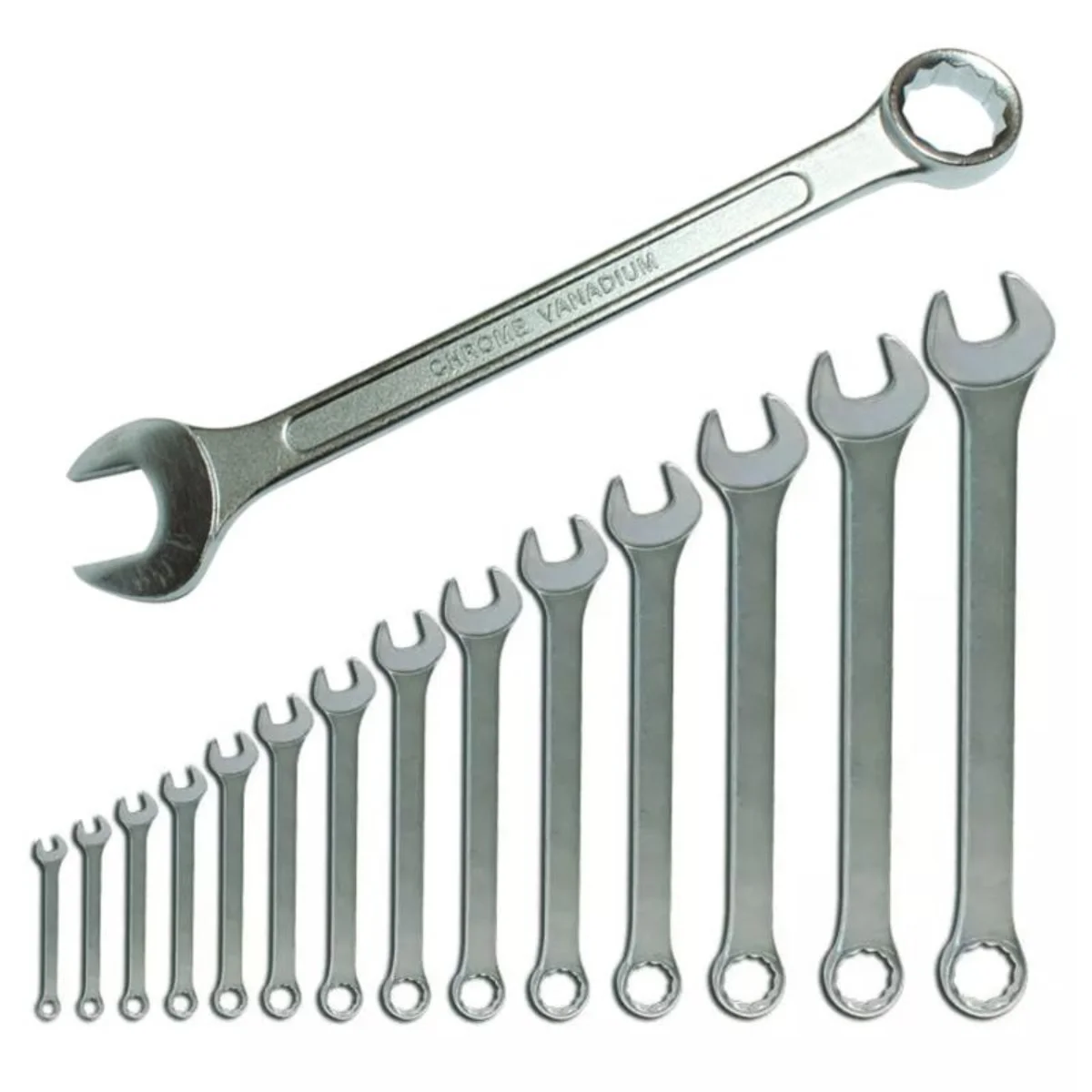 - Diseño Combinado: Incluye una llave española abierta, ideal para tareas de afloje o acceso rápido, y una llave cerrada (corona) estriada, perfecta para aplicar alta intensidad y torque en el apriete final.