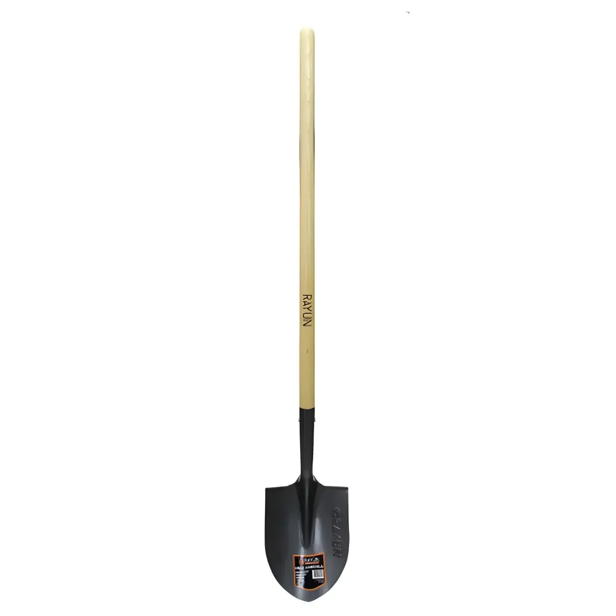 Pala Agrícola Rayun con Mango Largo (148 cm). Herramienta robusta y versátil para jardinería y agricultura. Hoja de Acero Carbono con tratamiento térmico y mango de madera fijado con doble remache para máxima firmeza. Ideal para áreas de difícil acceso.
