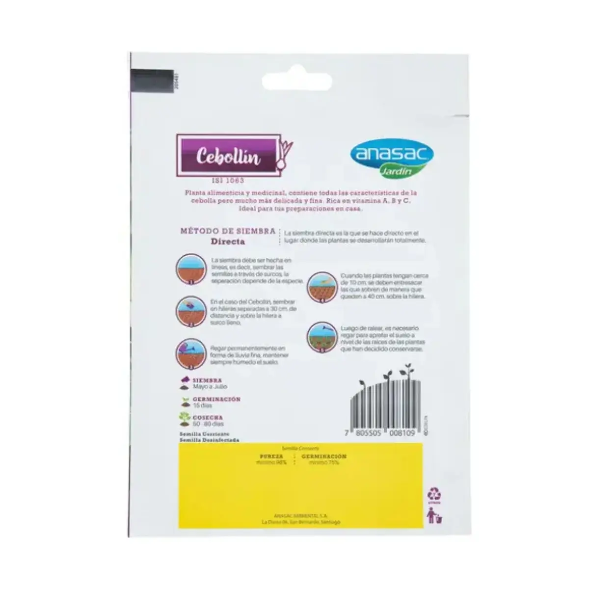 La Semilla de Cebollín de Anasac permiten cultivar una planta tanto alimenticia como medicinal, altamente valorada por su bulbo blanco y ovalado (de 3 cm o más de diámetro) que es un excelente aporte a la dieta.